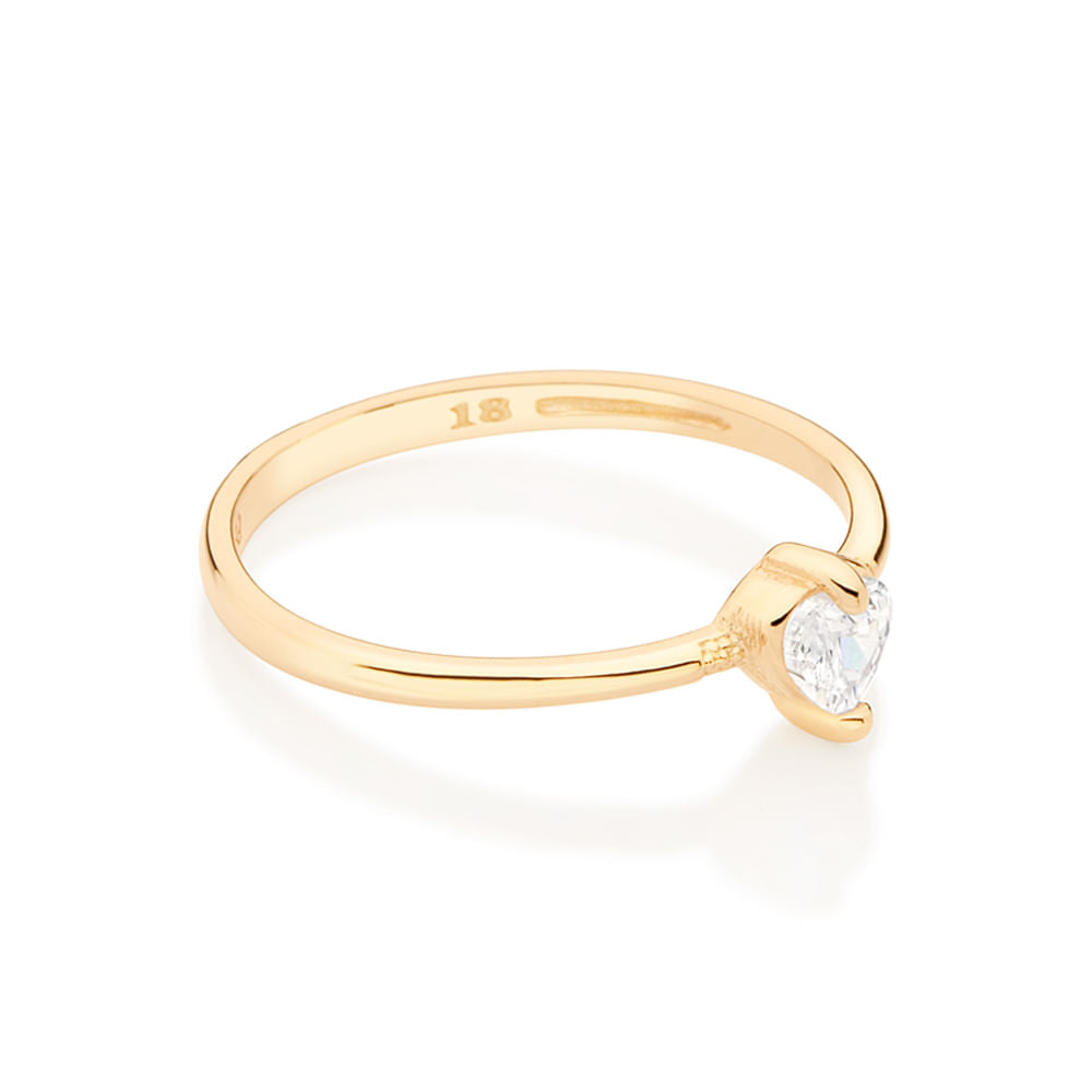 Anel solitário composto por 1 zircônia formato coração de 4x4 mm.