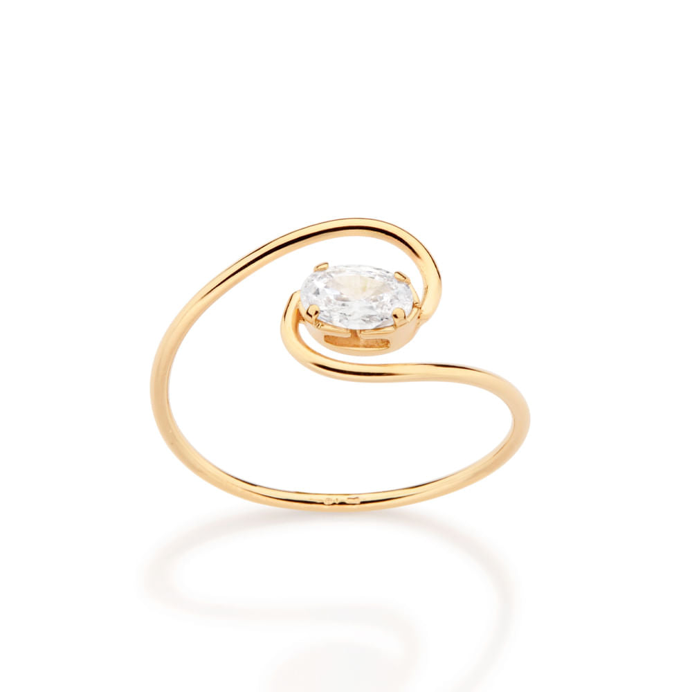 Anel skinny ondulado com 1 zircônia oval de 4x6 mm.