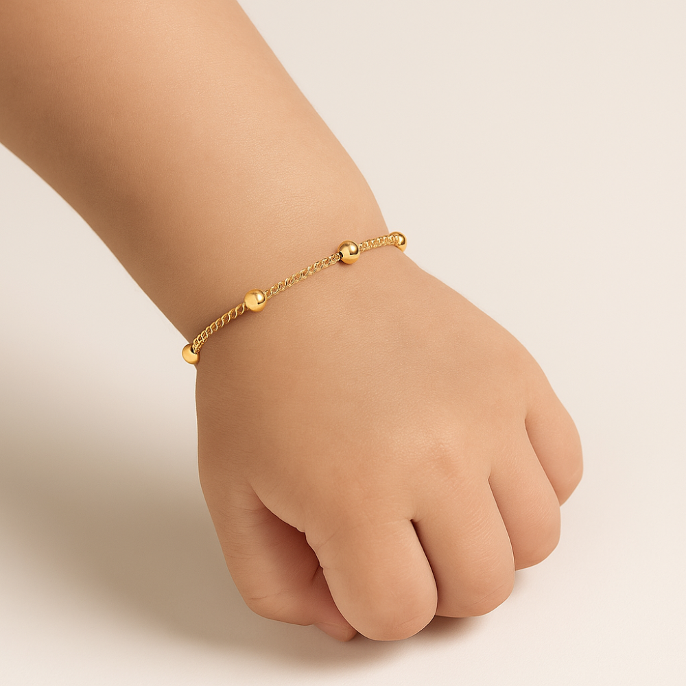 Adquira já a Pulseira Infantil formada por bolas de 4 mm, a escolha perfeita para celebrar momentos especiais com estilo e delicadeza.