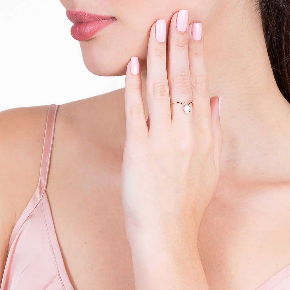 Anel solitário composto por 1 zircônia formato gota de 5x7mm