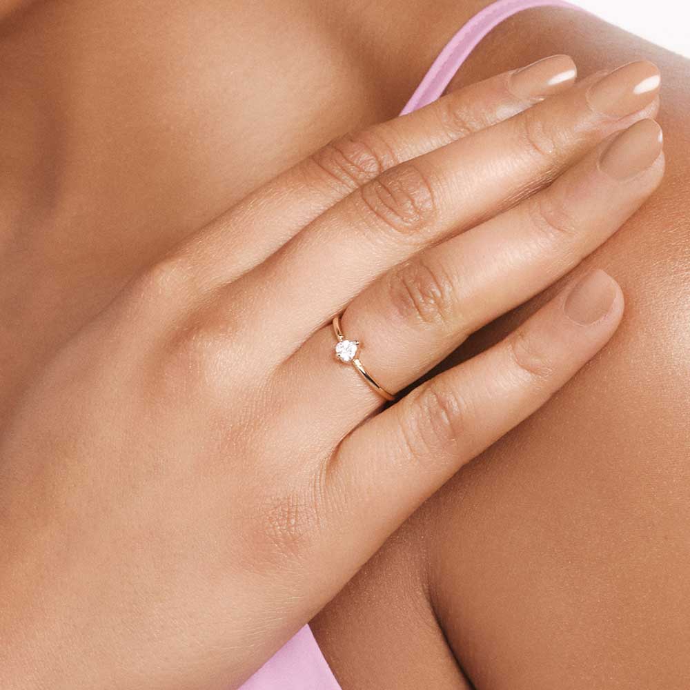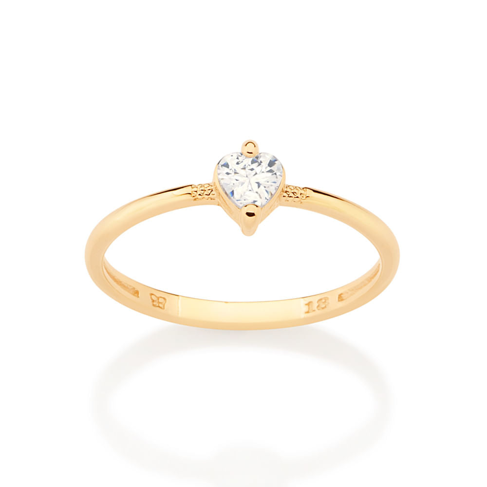 Anel solitário composto por 1 zircônia formato coração de 4x4 mm.