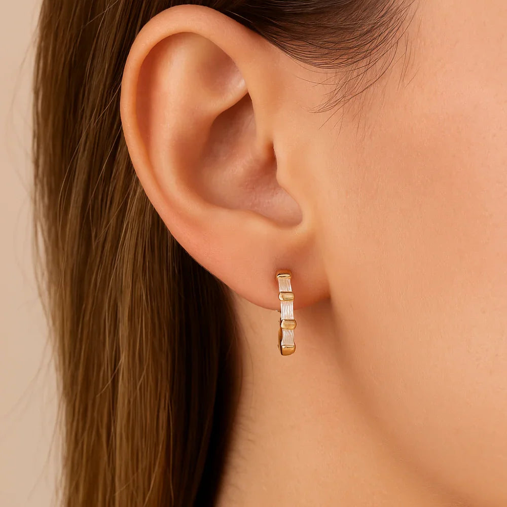 Benefícios exclusivos do Brinco Baguete com 6 Zircônias em Ouro 18K