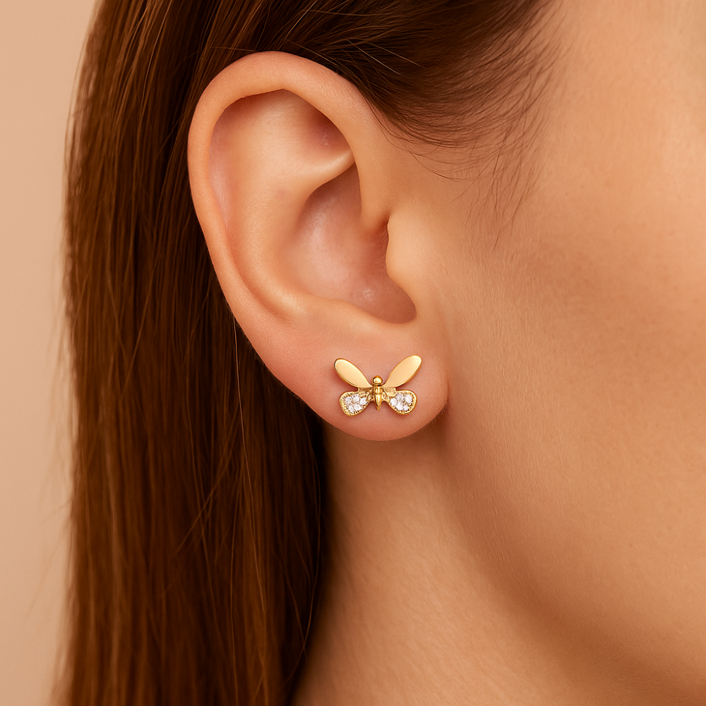Adquira já o Brinco Borboleta Cravejado com 28 Zircônias em Ouro 18K, símbolo de elegância e transformação para momentos inesquecíveis.