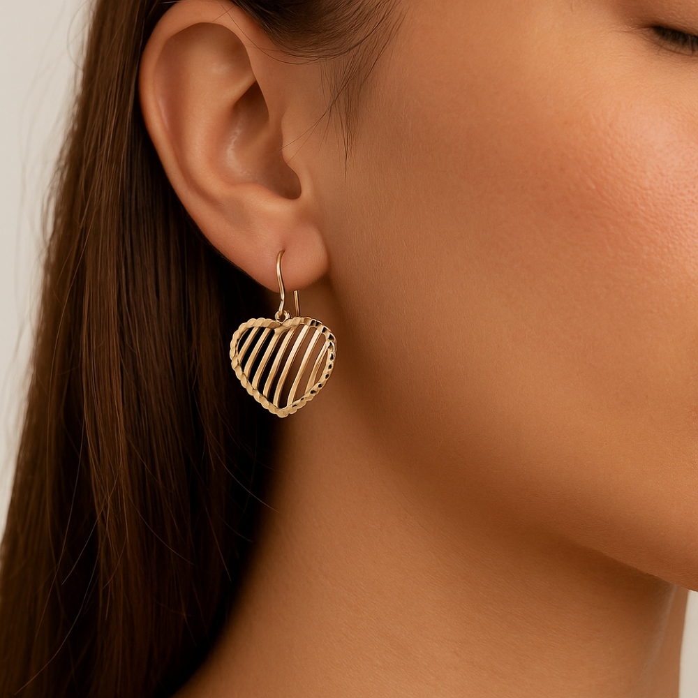 Encante-se com o Brinco Coração Abaulado em Ouro 18K – Filetes Vazados Diamantados, uma joia feminina e elegante que une design exclusivo e acabamento premium para valorizar sua beleza com sofisticação e charme romântico.