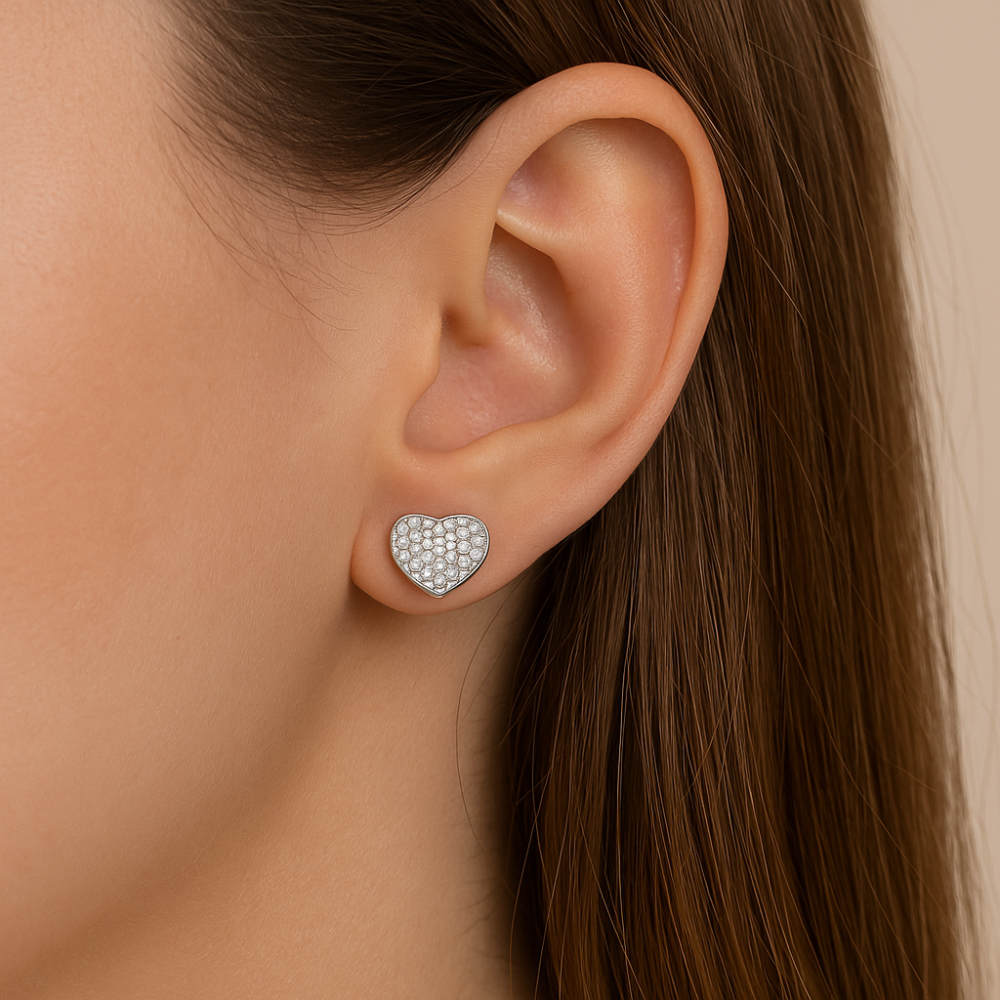 Brinco Coração Cravejado Rommanel com 62 Zircônias em Prata – Design Delicado e Brilhante