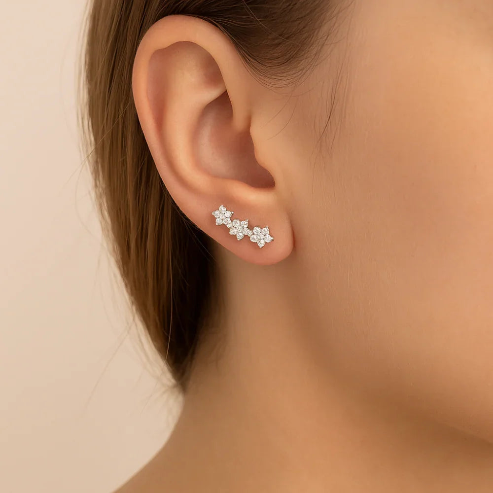 Adquira já o Brinco Flor Cravejado com 36 Zircônias em Prata, inspirado em momentos que merecem ser eternizados com estilo e brilho.