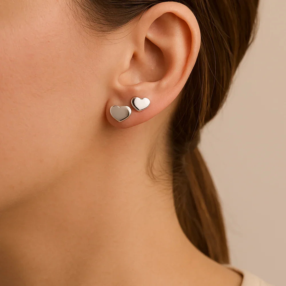 Brinco Kit Rommanel com Corações Lisos em Prata – Design Delicado Médio