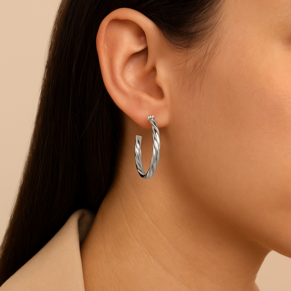 Adquira já o Brinco Meia Argola Oval Torcida, perfeito para destacar seu estilo com um toque de modernidade e charme.