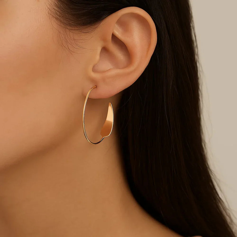 Adquira já o Brinco meia argola fina com detalhe no formato gota na ponta, perfeito para momentos que pedem um toque de elegância e exclusividade.