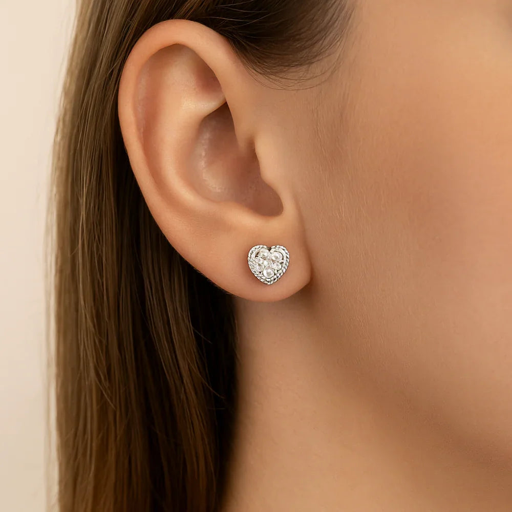 Brinco Solitário Rommanel com Duas Zircônias em Formato Coração – Laterais Trabalhadas com Frisos