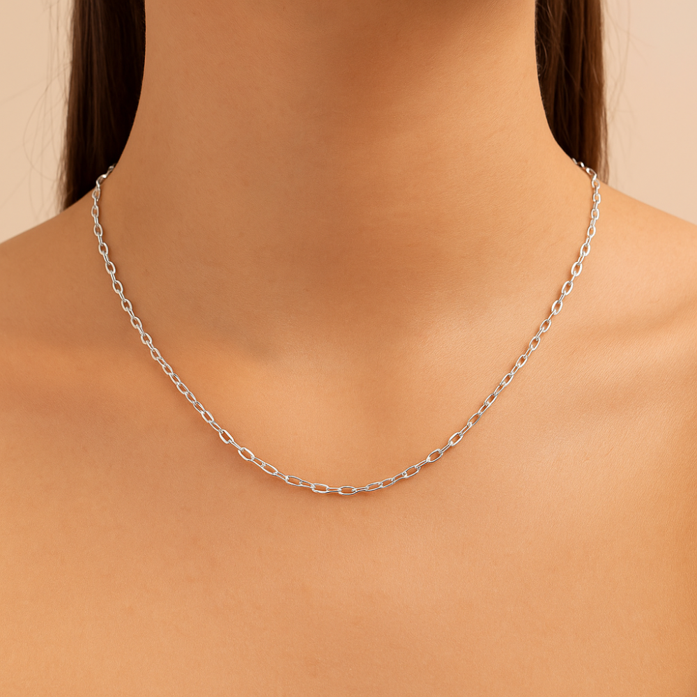 Cordão Rommanel com Elos Cadeados Ovais em Prata – Design Sofisticado e Atual