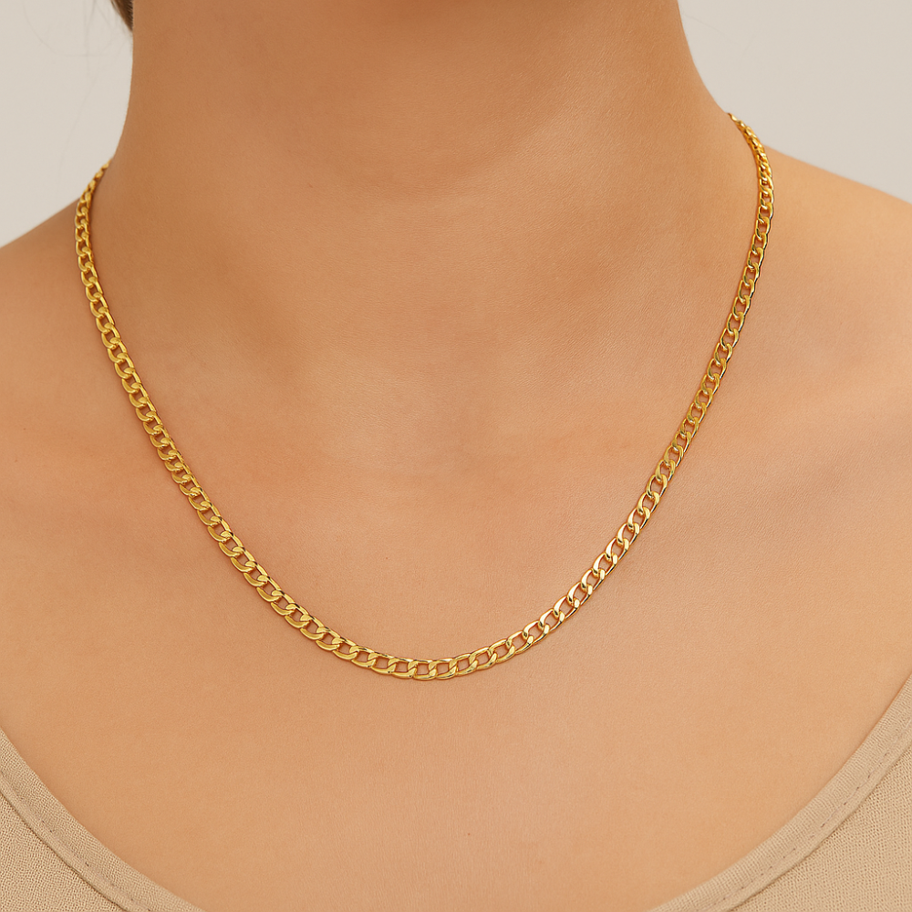 Elegância e sofisticação no Cordão em corrente de elo curto batido da Rommanel. Com acabamento premium banhado a ouro 18K, esta peça é perfeita para adornar seu pescoço com charme e resistência.
