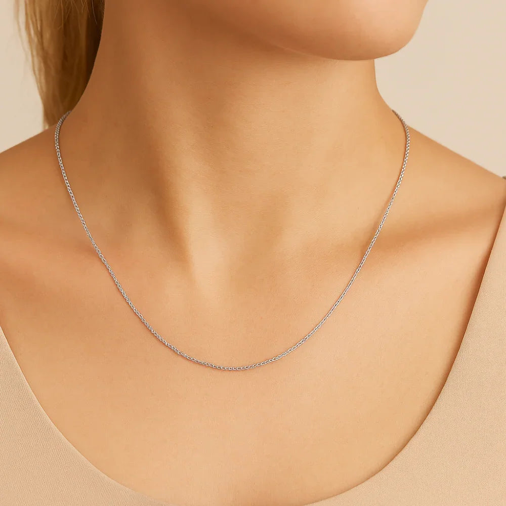 Corrente Gargantilha Elo Cadeado Rommanel em Banho de Prata 42 cm – Fio Delicado 0,50 mm