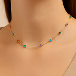 Gargantilha Choker Rommanel com Cristais Redondos Coloridos em Fio Palito Ajustável – Design Delicado e Moderno