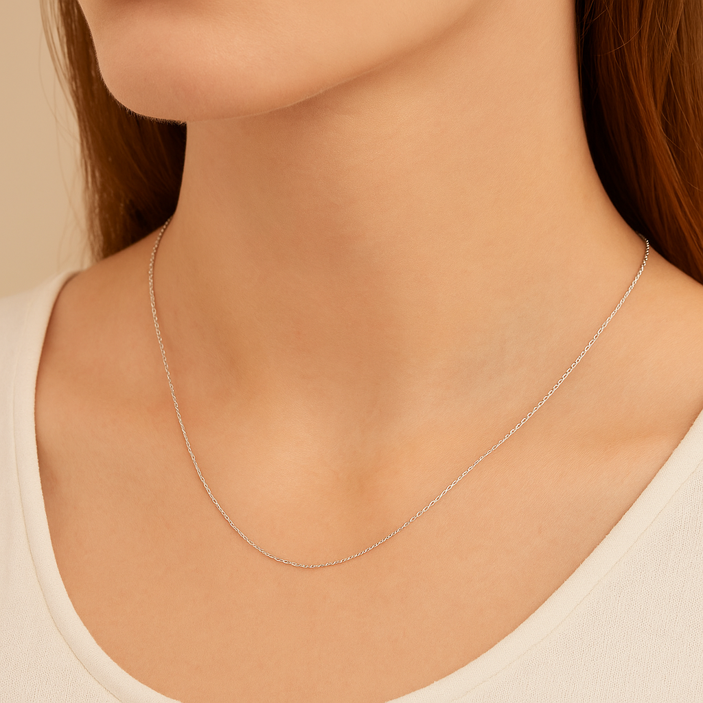 Gargantilha Corrente Elo Cadeado Rommanel em Prata Fina – Fio 0,35 mm, 42 cm
