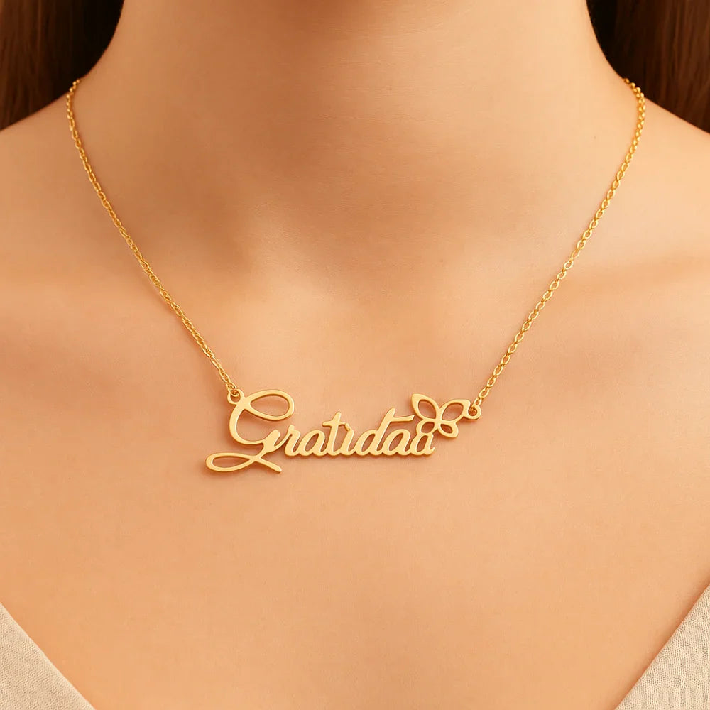 Adquira já a Gargantilha Elo Cadeado com Pingente Gratidão e Borboleta Vazado, inspirada em momentos que merecem ser eternizados com beleza e significado.