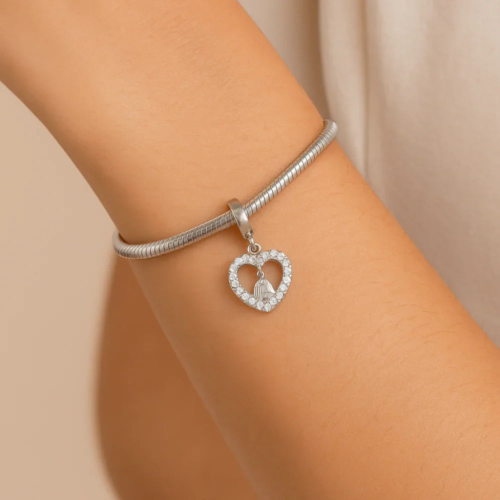 Pingente Coração Rommanel com Zircônias e Nossa Senhora Aparecida em Prata – Detalhe Cravejado Premium