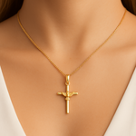 Elegância e espiritualidade reunidas no Pingente Cruz com Espírito Santo, uma peça exclusiva da coleção licenciada Giovanna Antonelli, banhada a Ouro 18K, perfeita para destacar sua fé com estilo e sofisticação.