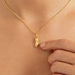 Proteção e estilo em uma peça única. O Pingente Formato Figa é uma joia elegante e delicada, banhada a ouro 18K, perfeita para quem busca um acessório cheio de significado e charme.
