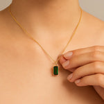Pingente Solitário Rommanel com Cristal Baguete Verde em Banho Ouro 18K – Design Retangular Elegante